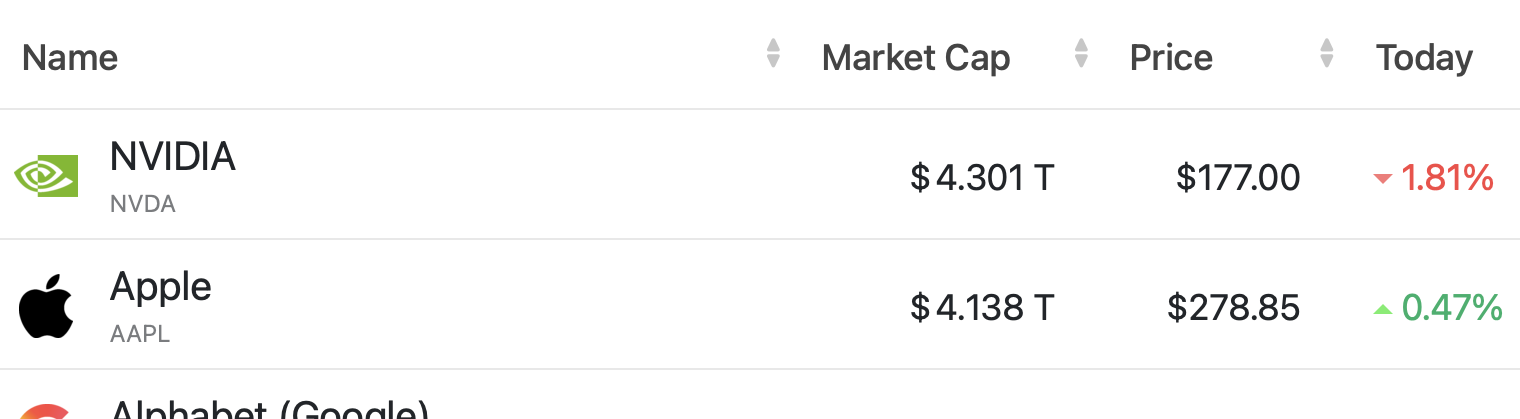 時価総額が4.301兆ドルのNvidiaは、現在、世界のほぼすべての国の年間経済生産よりも価値があります。現在、アメリカ、中国、ドイツのみがNvidiaの評価額よりも多くのGDPを生み出しており、この比較によれば、同社は実質的に地球上で4番目に大きな「経済」となっています。