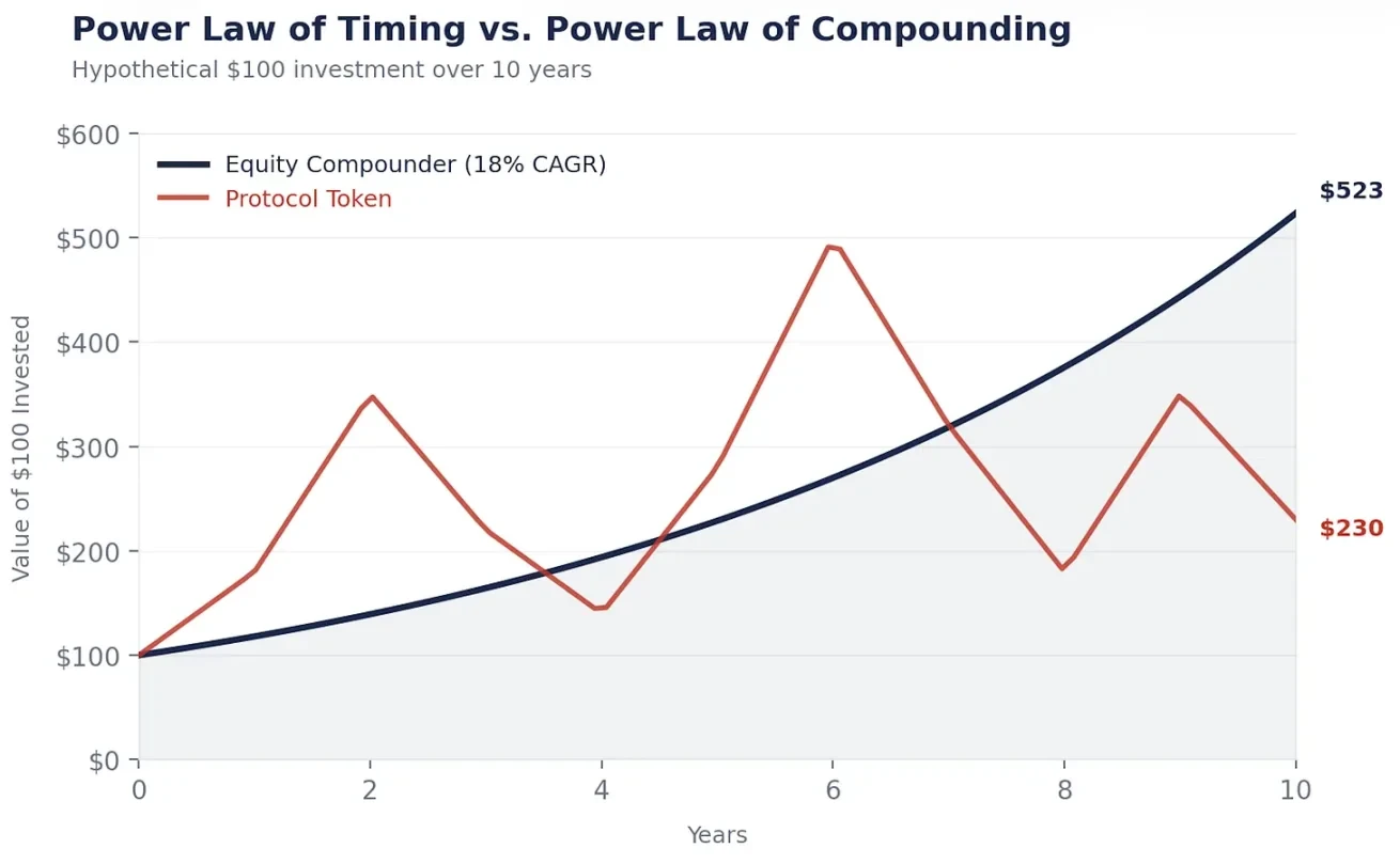 Until then, smart capital will continue flowing into stocks, and the gap in compound growth between tokens and stocks will only widen each year.