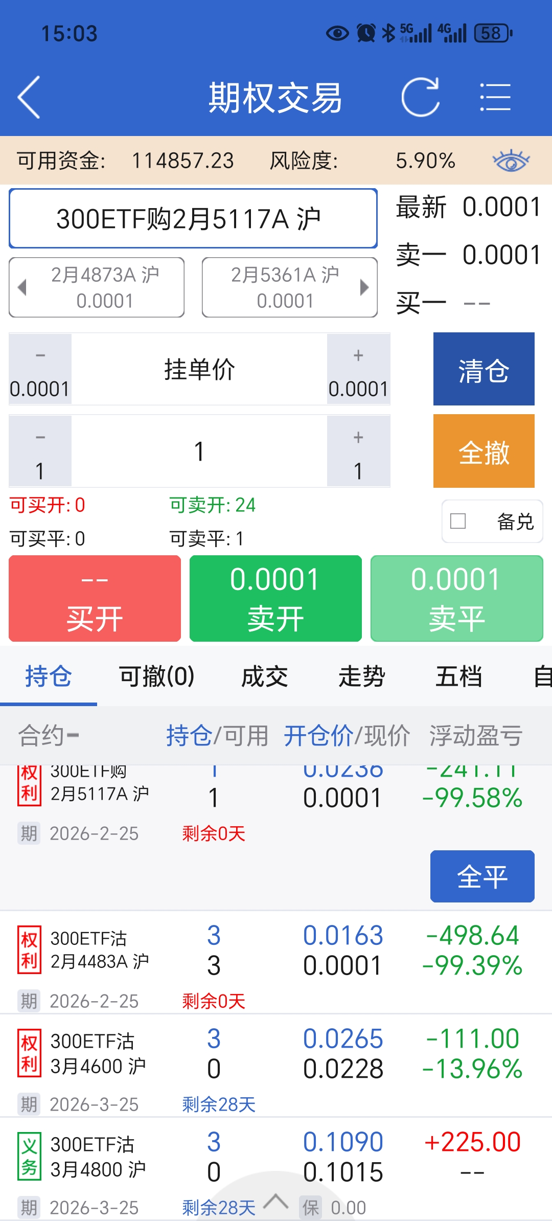 Today’s operation: take profit and close low-value put sales, transfer original put bullish positions to the next month.