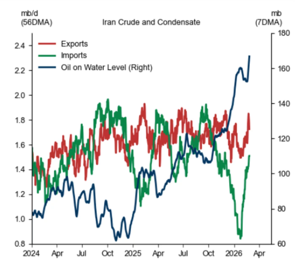 Despite short-term geopolitical risks remaining high, large amounts of sanctioned crude oil stranded at sea are becoming a significant factor suppressing oil price expectations. Goldman Sachs notes that as offshore crude volumes increase and storage tank pressures rise, discounts offered by sanctioned producers like Russia and Iran are further widening.