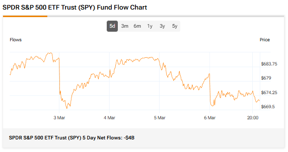 SPY’s five-day net outflows totaled $4 billion, showing that investors pulled out capital from the ETF over the past five trading days. Meanwhile, its three-month average trading volume is 82.86 million shares.