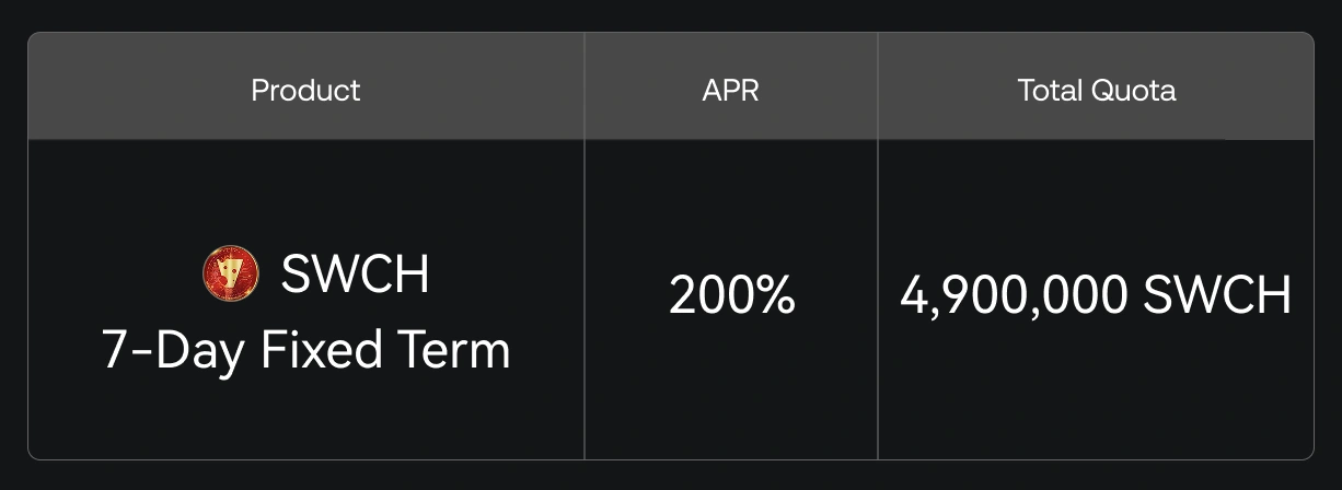 Simple Earn x SWCH bônus fase 2: 200% de APR em prazo fixo de 7 dias