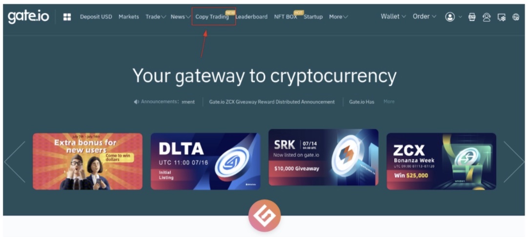Step One: Open the homepage of Gate official website and click on the navigation bar "Copy Trading".