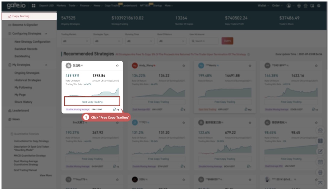Gate Quantitative Trading Center has been renamed “Copy Trading” and comprehensively upgraded, including both functions and the page layout. Strategy providers will be officially named “Signallers”. Signallers can enjoy a 5% profit share of unlimited replication tiers when their strategies are copied.