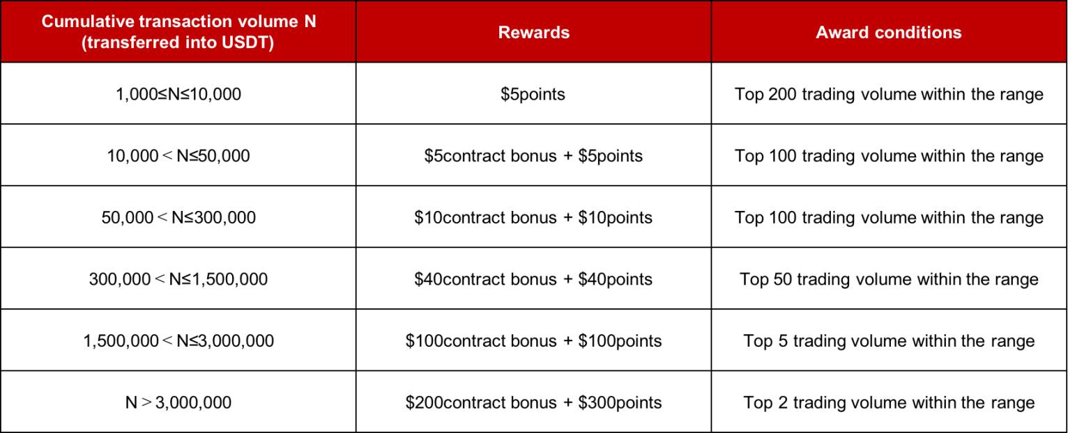 1.During the event, users can choose the following perpetual contracts pairs to trade: BTC/USDT, ETH/USDT, LINK/USDT, DOT/USDT, SHIB/USDT, XRP/USDT, LUNA/USDT, EOS/USDT, DOGE/USDT, ADA/USDT, LTC/USDT, SUSHI/USDT, UNI/USDT, BSV/USDT, FIL/USDT, BNB/USDT, ALICE/USDT, AXS/USDT, BCH/USDT/ ,CRV/USDT (USDT settlement)