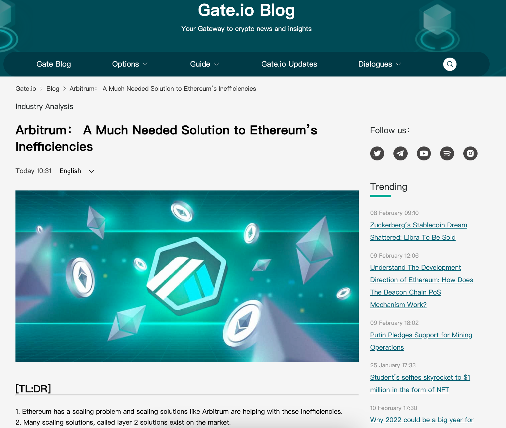 1. Ethereum has a scaling problem and scaling solutions like Arbitrum are helping with these inefficiencies.