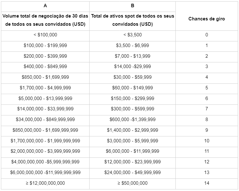 Desde que seus convidados, que foram convidados nos últimos meses de 2022 ou durante este período do evento, atendam ao requisito (A ou B) abaixo, você terá a chance de girar a Roda da Sorte de Inicialização em cada rodada.