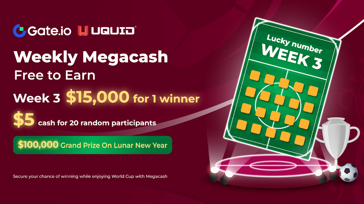Another week gone, another high the prize reached. The first 2 weeks of the Weekly Megacash have made a huge impression on Gate's users with its big and increasing prize week by week, together with the friendly gameplay. Following this success, the Megacash Week 3 is live now with a $15,000 prize for the luckiest participant and $5 cash for 20 random participants.