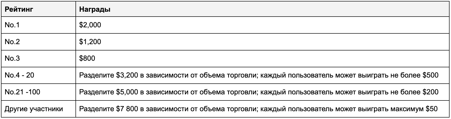 5. Пользователь, имеющий субсчета и основной счет, а также несколько счетов с одинаковой информацией KYC, будет считаться одним и тем же участником, при этом объем торговли субсчетов не будет учитываться как объем торговли основного счета.