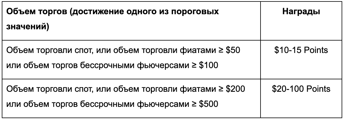 2.Объем торгов = покупки + продажи; торговые пары спот должны находиться в торговой зоне USDT (пара BTC/USDT исключена); торговые пары бессрочных фьючерсов должны находиться в бессрочном контракте USDT-Margin.