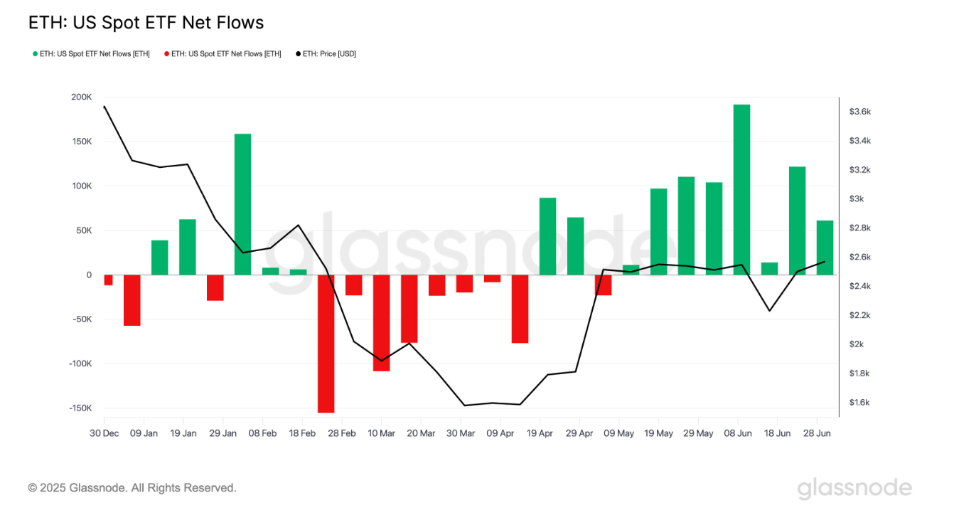 В США Эфир Спот ETF непрерывно на протяжении восьми недель фиксирует чистый приток, спрос со стороны институциональных инвесторов остается сильным.