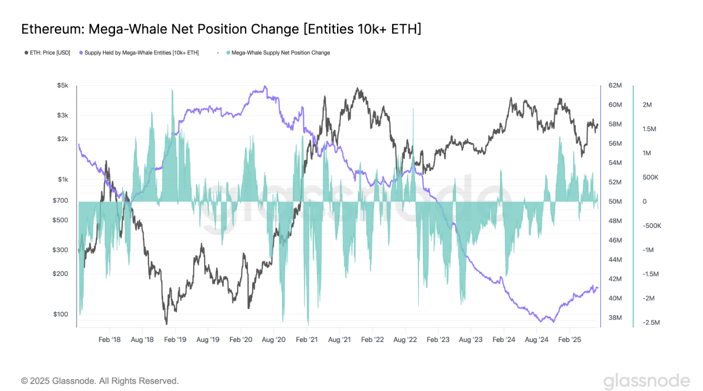 Gate News bot сообщает, что согласно данным Glassnode, Кит, владеющий как минимум 10 000 ETH, ускоряет наращивание своих активов, скорость которого даже превышает уровень перед ростом ETH на 95% в середине 2022 года.
