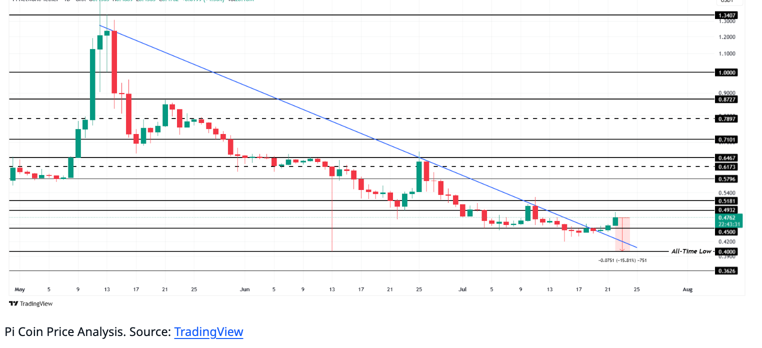 Ключевая цена: борьба между поддержкой и сопротивлением Краткосречное движение токена Pi зависит от борьбы за два ключевых уровня цен:
