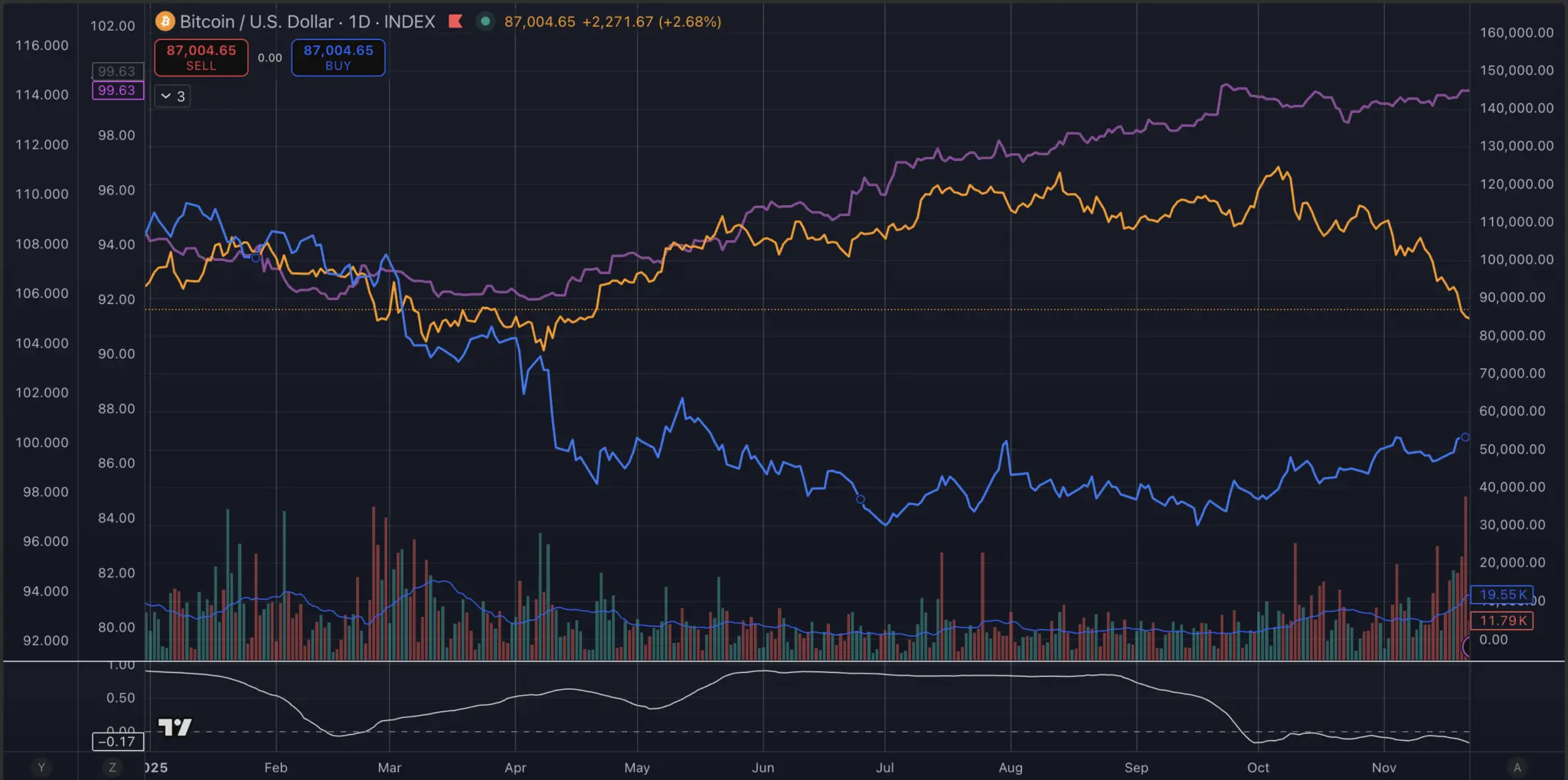 Tương quan BTC vs DXY: −0,58