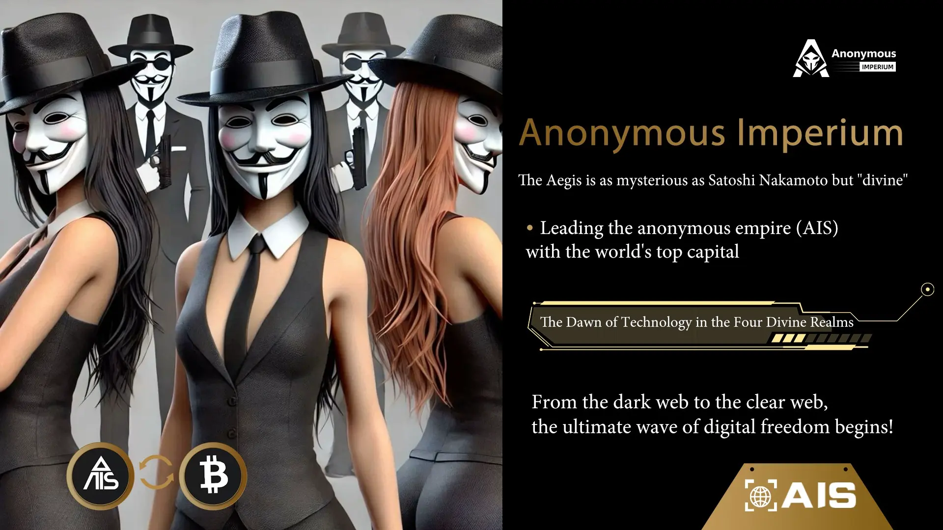 AIS Anonymous Imperium — это проект нового цифрового суверенного порядка, созданный ведущими капиталами и технологическими альянсами. Он стремится обеспечить элите эпохи цифровых технологий “анонимность, свобода и богатство” через военного уровня технологий конфиденциальности и нормативные рамки.