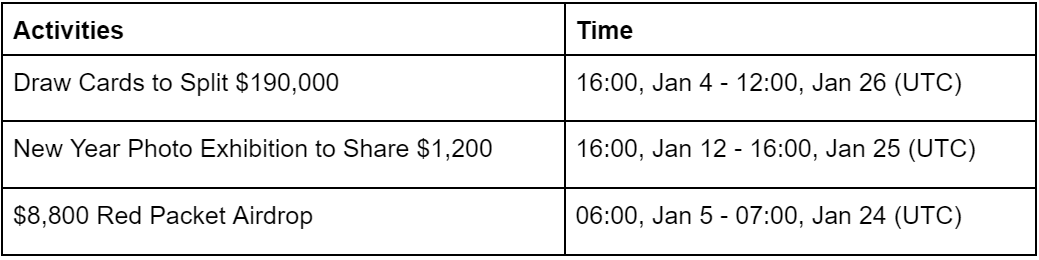 Activity 3: $8,800 Red Packet Airdrop (06:00, Jan 5 - 07:00, Jan 24, UTC)