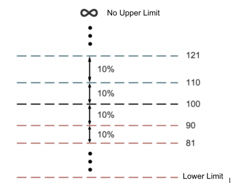 1GT'nin fiyatı 100USDT olduğunda sınırsız bir grid stratejisi oluşturun ve grid başına getiri oranını %10 olarak ayarlayın. 10GT'niz var (1000USDT'ye eşdeğer). 1GT'nin fiyatı 110USDT'ye yükseldiğinde, elinizdeki GT'nin değeri 1100USDT olur. Elinizdeki GT'nin değerini 1000 USDT'de tutmak için 100USDT değerinde GT satılacak ve elinizdeki GT miktarı 8,9'a düşecektir. GT'nin fiyatı yükselmeye devam ederse, strateji fazladan GT miktarını satmaya devam edecek, ancak asla tüm GT'yi satmayacaktır, çünkü tutulan GT'nin değeri 1000USDT'de tutulmalıdır.