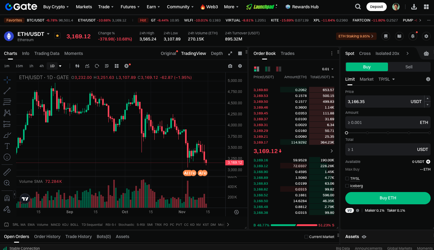 You can trade ETH spot at: https://www.gate.com/trade/ETH_USDT
