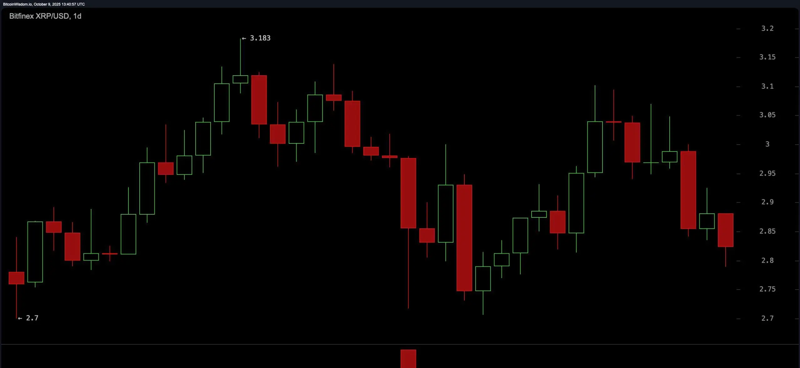 $3.10'un hemen altında zirve yaptıktan bir hafta sonra, XRP 9 Ekim'de kısa bir süreliğine $2.80'in altına düştü---bu, 28 Eylül'den bu yana en düşük seviyesiydi. Düşüş, piyasa değerini $170 milyar altına düşürdü ve özellikle XRP'nin piyasa değeri sıralamalarında bazı diğer kripto paraların gerisinde kalmasıyla birlikte, sahipleri arasında endişe yarattı.