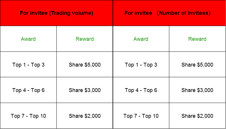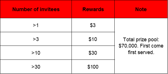 Inviters who invite friends, have completed KYC, and have a trading volume of more than $100, will receive the corresponding prize: