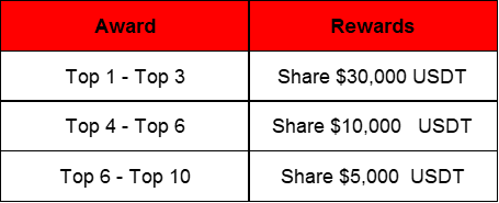 1. Share the prize of $50,000 USDT: