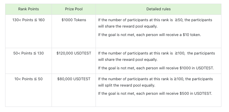 4. The token rewards for this event will be issued with the equivalent token value according to the actual market price. KYC 2 certification must be completed before receiving the rewards. USDTEST is valid for 7 days and will be deposited to your wallet account within 14 business days after the event's end. Please keep an eye on your account.