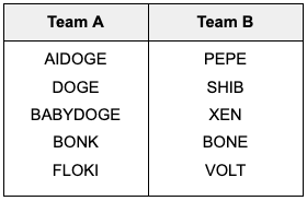 Click the button above to select one of the teams (this is the list with no particular order) and complete the spot trading, which are limited to the meme coins, specified in the team that you choose, in USDT trading pairs. Each user can only select one team.