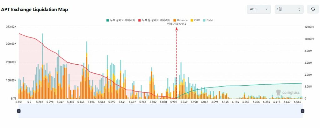 ! Джерело: CoinGlassДодатково, якщо APT падає нижче $5,30, продавці можуть активувати ордер на продаж, створюючи додаткову силу. Волатильність, ймовірно, зросте через позиції з кредитним плечем, сконцентровані поблизу цих цінових рівнів.