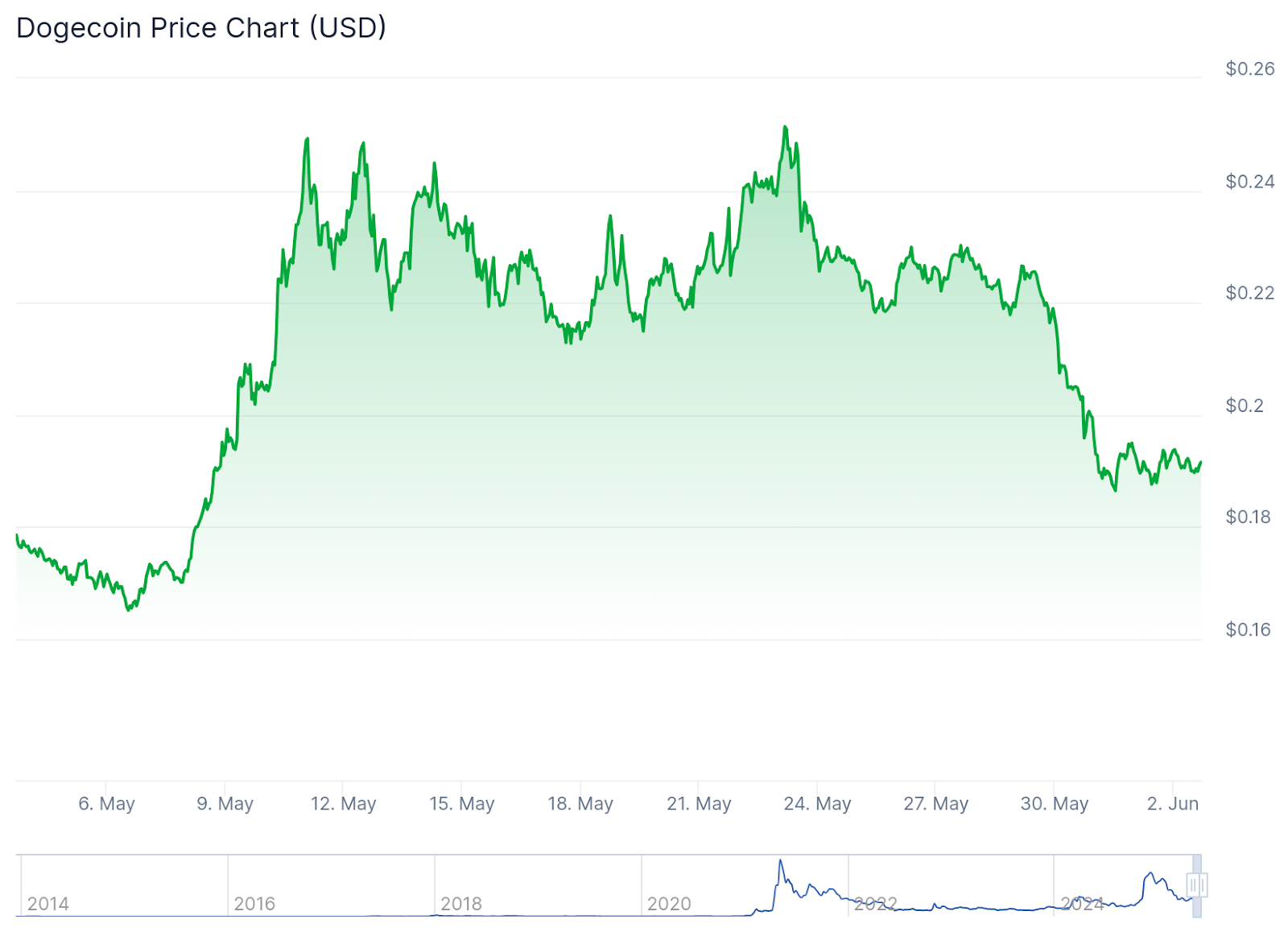 ! Dogecoin втрачені прибутки, отримані в травні. Джерело: CoinGecko