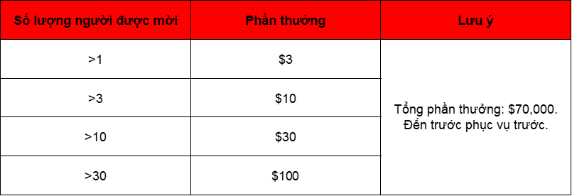 Những người mời mời bạn bè, đã hoàn thành KYC và có khối lượng giao dịch hơn $100, sẽ nhận được phần thưởng tương ứng: