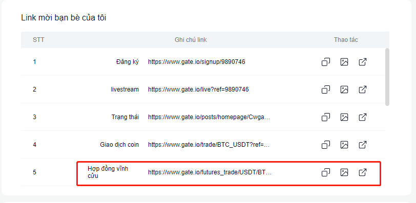2. Trong “Link mời bạn bè của tôi” chọn sao chép liên kết hợp đồng vĩnh cửu, gửi cho người bạn muốn mời