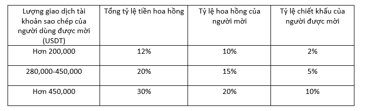 <1> Khi khối lượng giao dịch của người được mời đạt 200.000USDT, bạn sẽ được chiết khấu 10% phí giao dịch và người được mời sẽ được giảm 2% phí giao dịch;