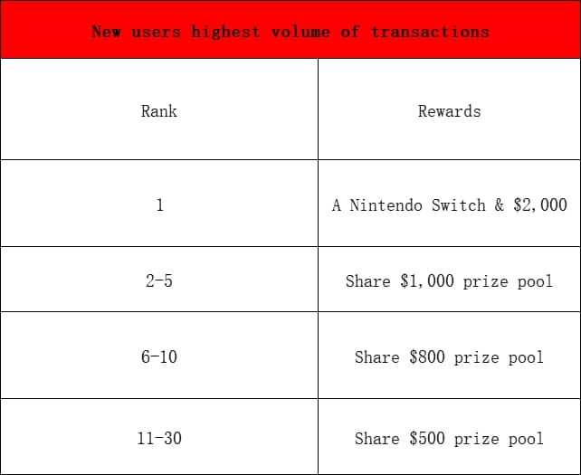Phúc lợi của người dùng mới: Trở thành người dùng mới và có khối lượng giao dịch cao để nhận phần thưởng 2.000 USD