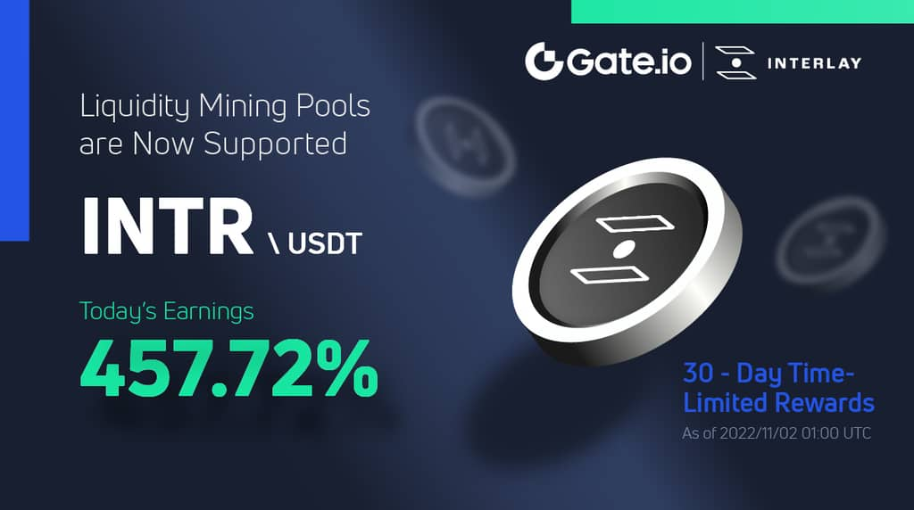 Gate đã chính thức mở nhóm khai thác thanh khoản mới của INTR/USDT (Chế độ giao dịch thông thường), lúc 16:00 ngày 1 tháng 11 (Giờ Việt Nam), thêm phần thưởng giới hạn thời gian 170,648 INTR, hoan nghênh người dùng đến trải nghiệm.