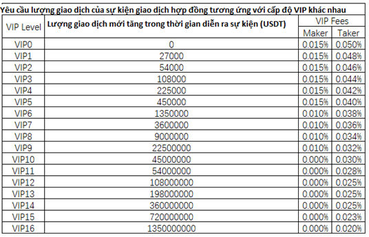 Gate có các mức phía khác nhau cho người dùng VIP ở các cấp độ khác nhau, cấp độ VIP càng cao thì mức phí càng thấp.