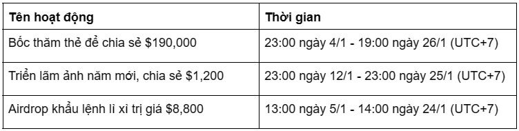Hoạt động 3: Airdrop khẩu lệnh lì xì trị giá $8,800 (13:00 ngày 5/1 - 14:00 ngày 24/1 UTC+7)