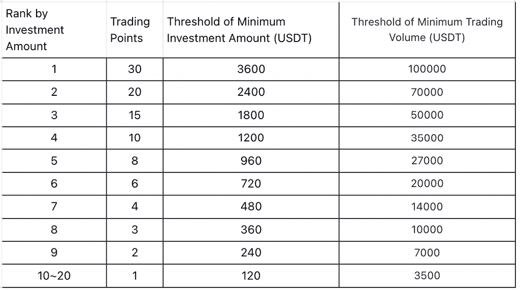 1 điểm = 2USDT, nền tảng sẽ công bố số điểm tương ứng mà người dùng tích cực kiếm được sau mỗi cuộc thi.