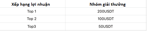 Ngoài việc sử dụng coin trải nghiệm định lượng, nếu những người tham gia cũng sử dụng vốn của mình để tham gia cuộc thi giao dịch lưới, họ có thể nhận được phần thưởng bổ sung! Tổng giải thưởng như sau: