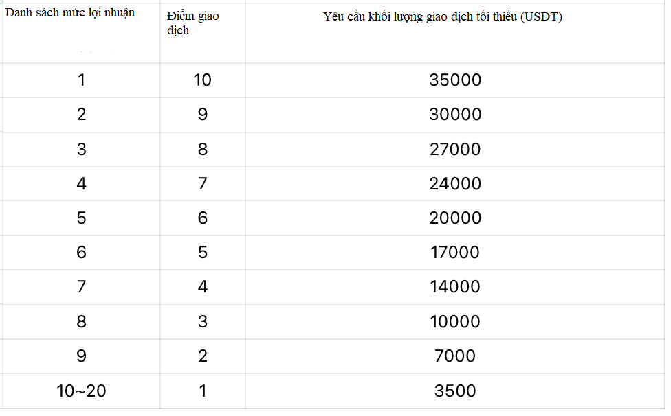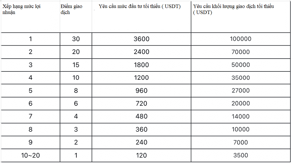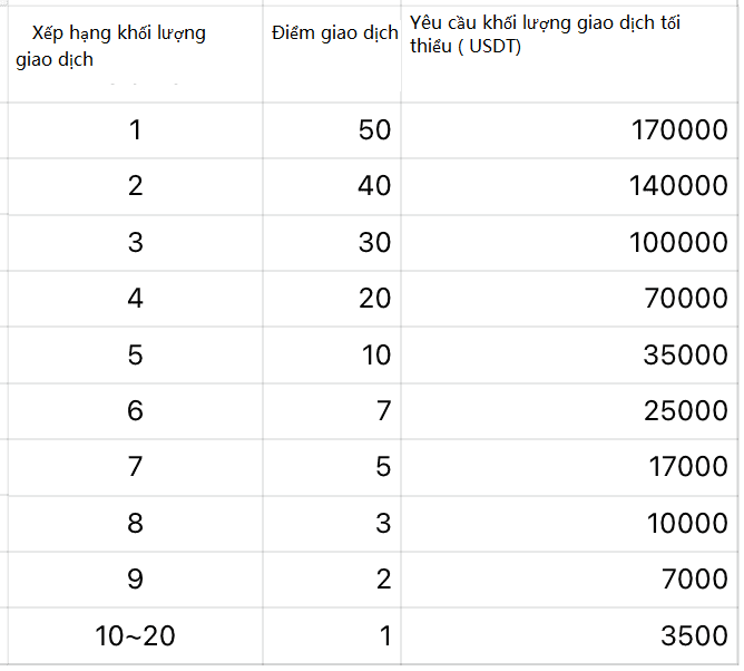 Kênh 1: TOP20 người dùng có khối lượng giao dịch trong thời gian diễn ra hoạt động sẽ nhận được các điểm sau