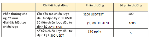4.Bạn có thể tham gia hoạt động cùng một lúc và phần thưởng sẽ được phát hành dưới dạng point và USDTEST. USDTEST có giá trị trong 7 ngày và point có giá trị trong 14 ngày, sẽ được phân phối vào tài khoản ví trong vòng 14 ngày làm việc sau khi kết thúc hoạt động và có thể xem trong “Tài chính của tôi - Chi tiết thanh toán”.