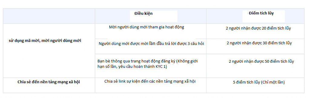 e.Sau khi hoạt động kết thúc, phần thưởng sẽ được phân phối vào tài khoản ví của bạn dựa trên số điểm tích lũy của bạn;