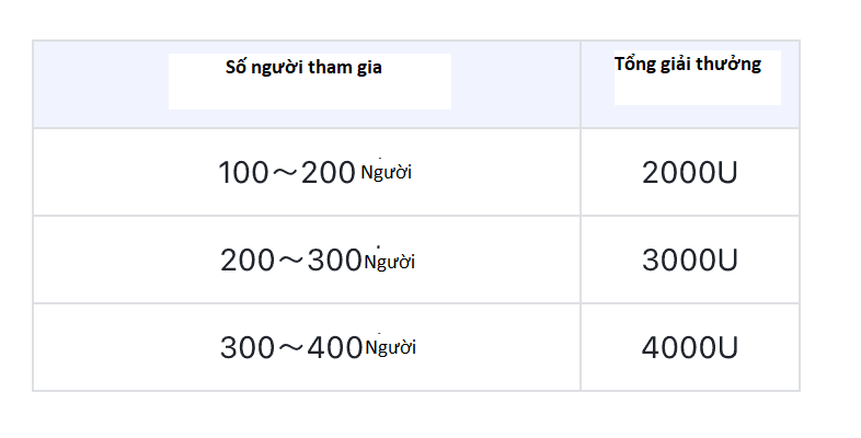 Tổng tiền thưởng tăng theo số lượng người tham gia, số lượng người tham gia càng nhiều, mỗi người dùng càng có nhiều cơ hội giành được phần thưởng cao hơn.