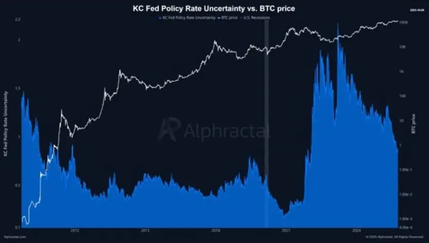 歷史表明,KC PRU與比特幣的表現有着密切的關係。當該指數下降時,市場通常會變得更加穩定,從而推動資金流向像比特幣這樣的高風險資產——這一領先的加密貨幣市值超過2千億美元。
