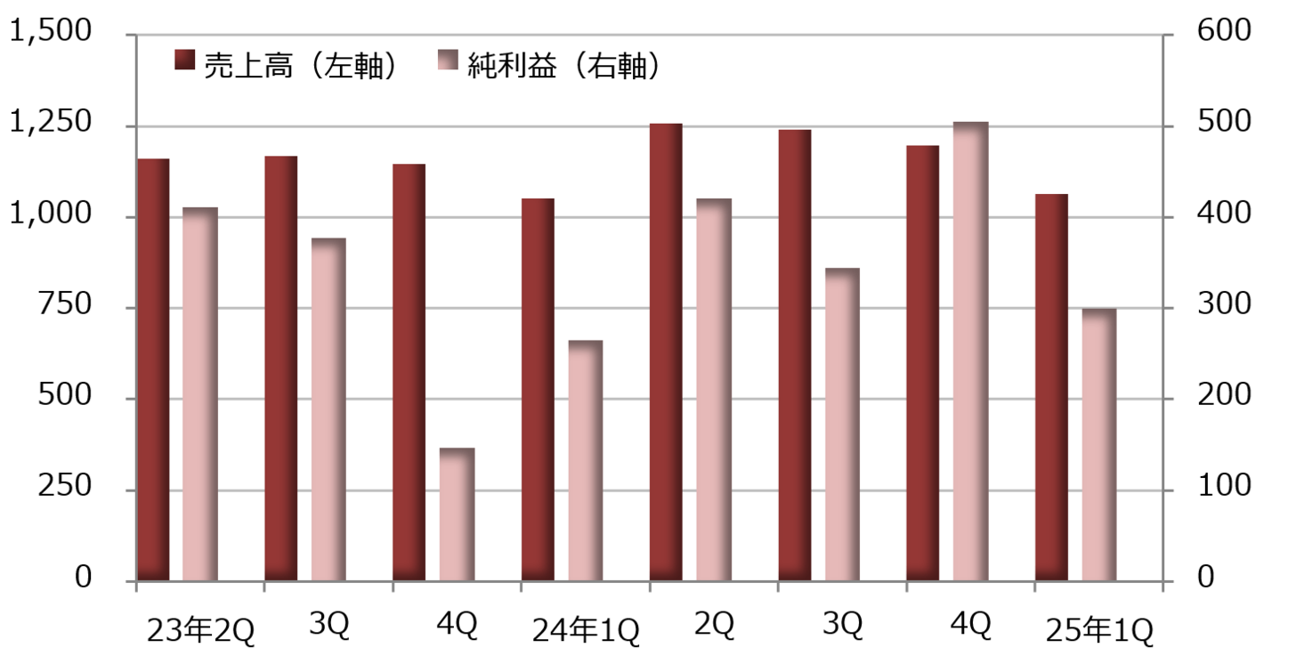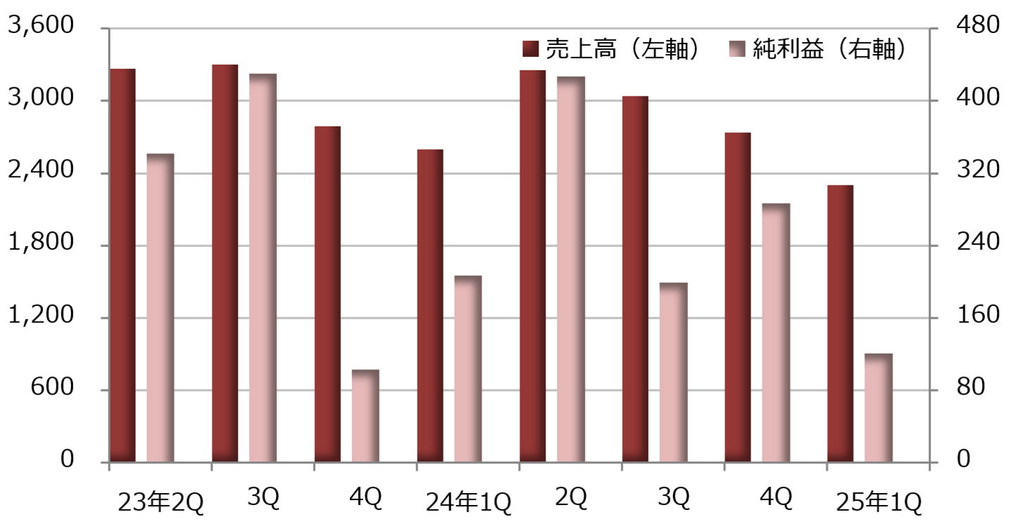 業績方面,銷售額縮小趨勢令人擔憂,預計2025年1-3月期的淨利潤也將大幅減少,股票價格持續下跌。不過,作爲夏季商品,往年在4-6月期和7-9月期的業績都有所擴大,市場預期2025年也將出現類似的趨勢。