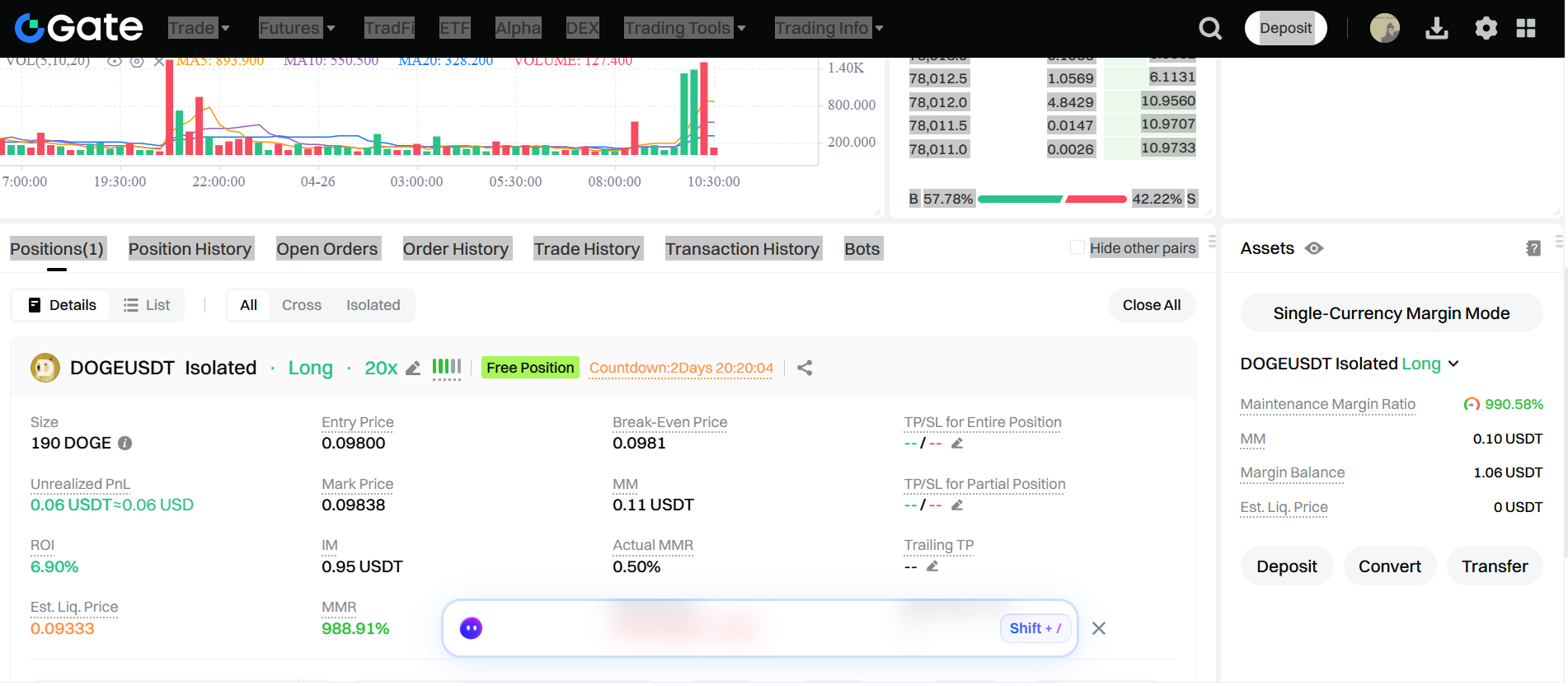 在觀察時,倉位顯示出適度的未實現利潤,約ROI為6.9%。這展示了即使是小幅價格變動,在槓桿作用下也能產生有意義的回報。