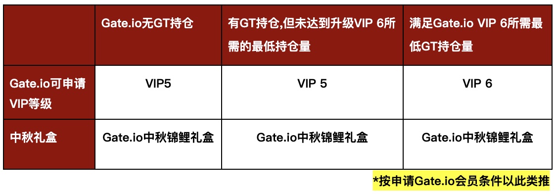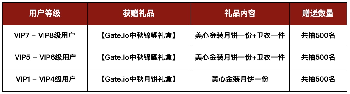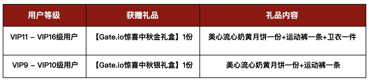 中秋将至,又是一年好相聚!在这人月两团圆的美好节日里,为了让更多用户感受到Gate的真挚中秋问候,我们特推出“跨所礼遇贺中秋, 他所我所共享VIP免费赠礼”活动:即日起,已在其他交易平台拥有VIP等级的用户,不仅可在Gate申请相应交易量的VIP等级,还有机会获得Gate定制的中秋感恩礼盒,快来和Gate一起共庆佳节,喜迎中秋拿好礼吧。