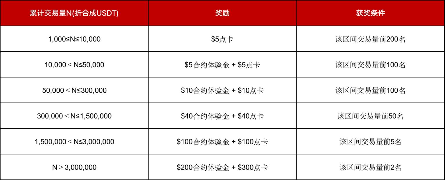 5.活动期间,用户累计交易量等于买入量+卖出量(包括未实现盈亏、已实现盈亏);