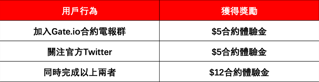 活动期间,用户首次加入Gate Futures Official(Telegram)或关注Gate Futures(Twitter),并上传截图至活动表单中,即可获得奖励,限前500名用户。此外,进入官方合约电报群后,群内更有其他丰厚奖励。
