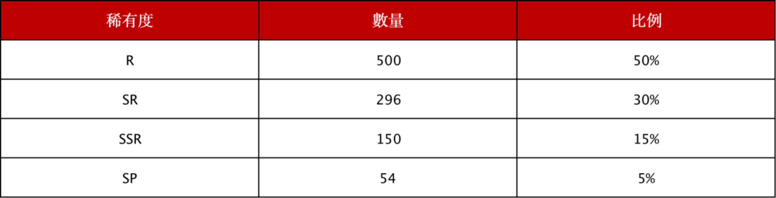 该款盲盒共具有四个稀有度,每个稀有度对应不同的作品数量,按照稀有度排名:SP>SSR>SR>R