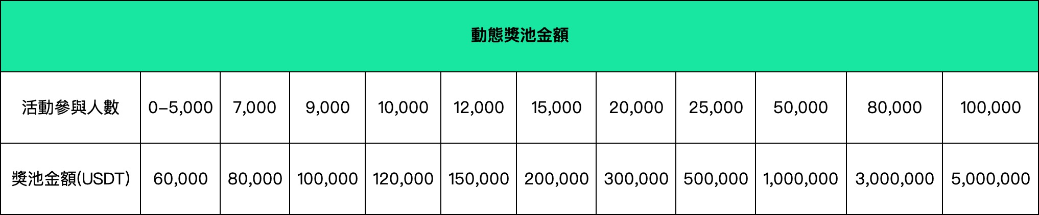 8. 活动最终奖金池金额由有效交易人数确定,有效交易人数=活动报名人数-比赛期间未开仓用户数-经风控系统检测的作弊用户数(包括但不限于批量注册虚增奖池、配对交易、自成交等)。